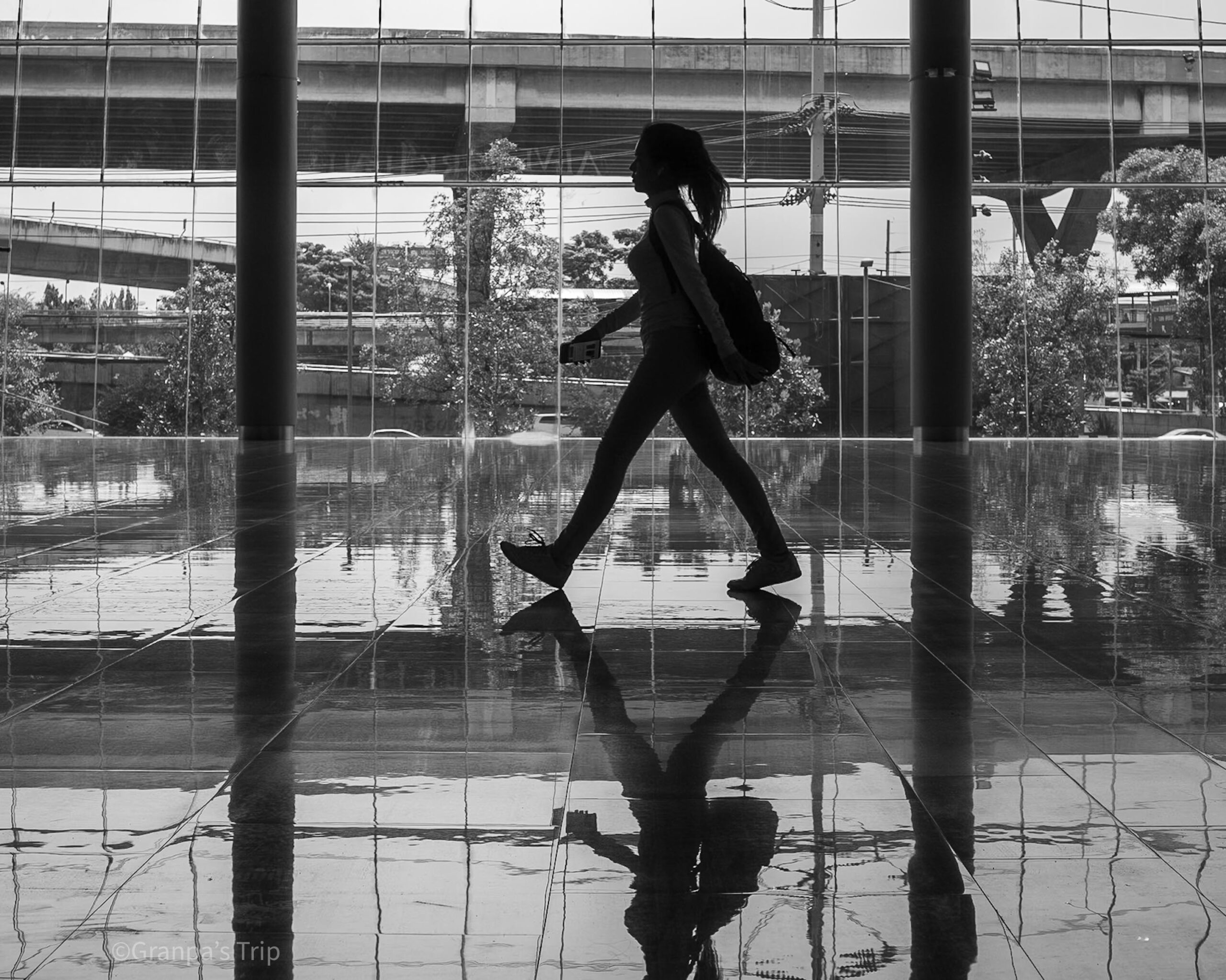 静寂に包まれた駅の片隅、視界の境界線にひそむ人の存在。