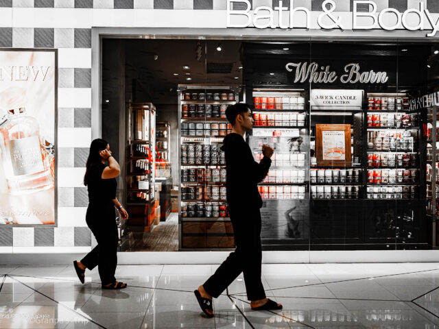 カート押してるだけやのに、ガラスに映った自分と目ぇ合うてもうたわ。