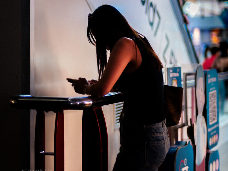ブランドの紙袋さげて露天で物色中。X-T5 f/2.4 1/800sec ISO-400 60mm