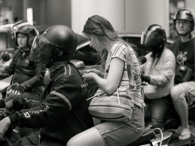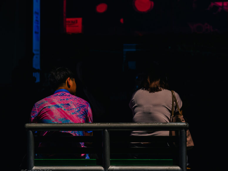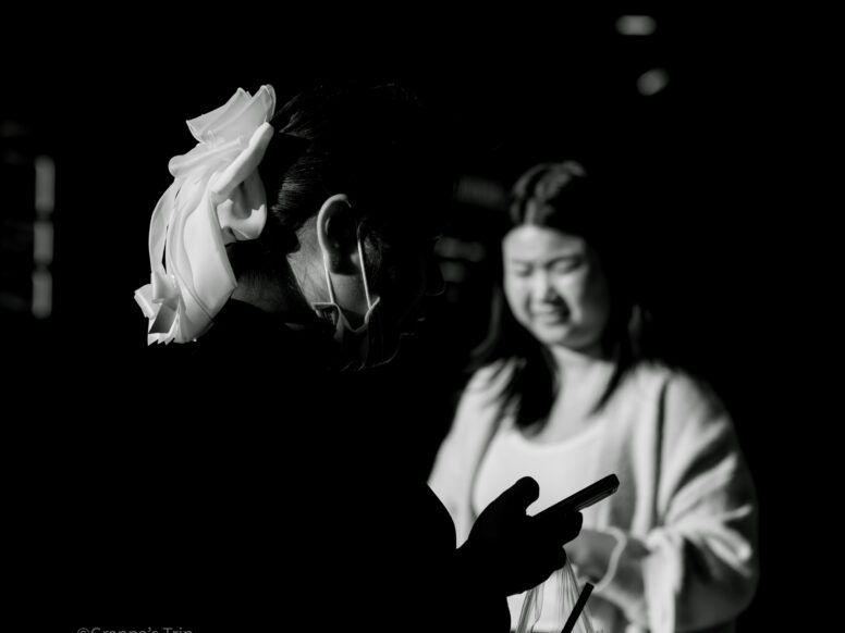 街の灯りの中、静かに整える横顔。X-T5 f/2.4 1/7500sec ISO-51200 60mm